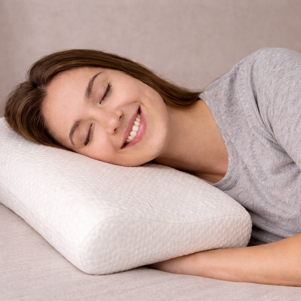 Ergonomisches Kissen zur Unterstützung von Kopf und Nacken.